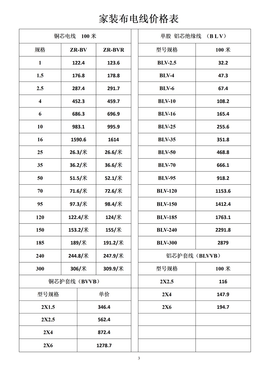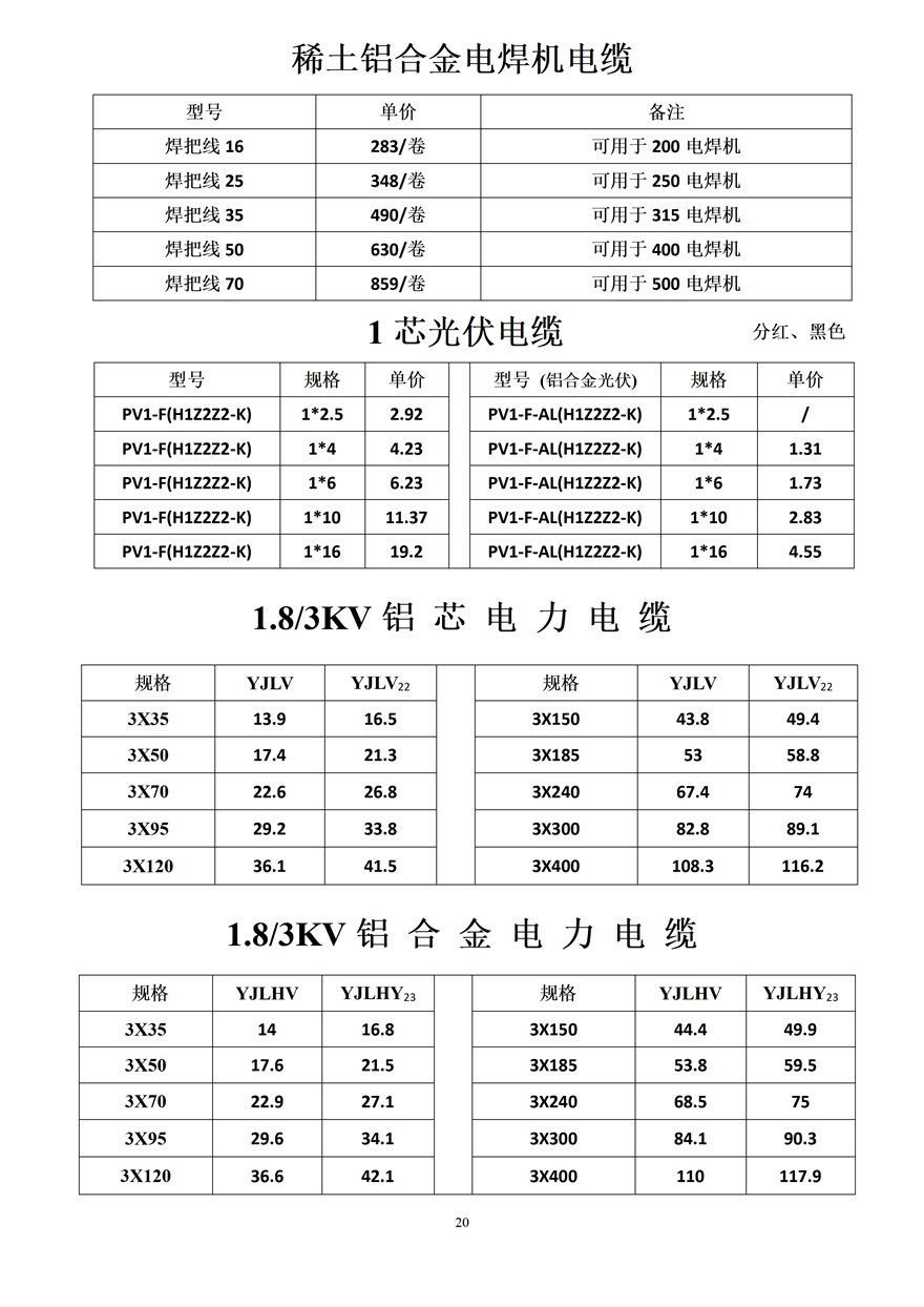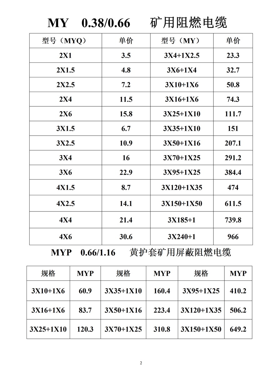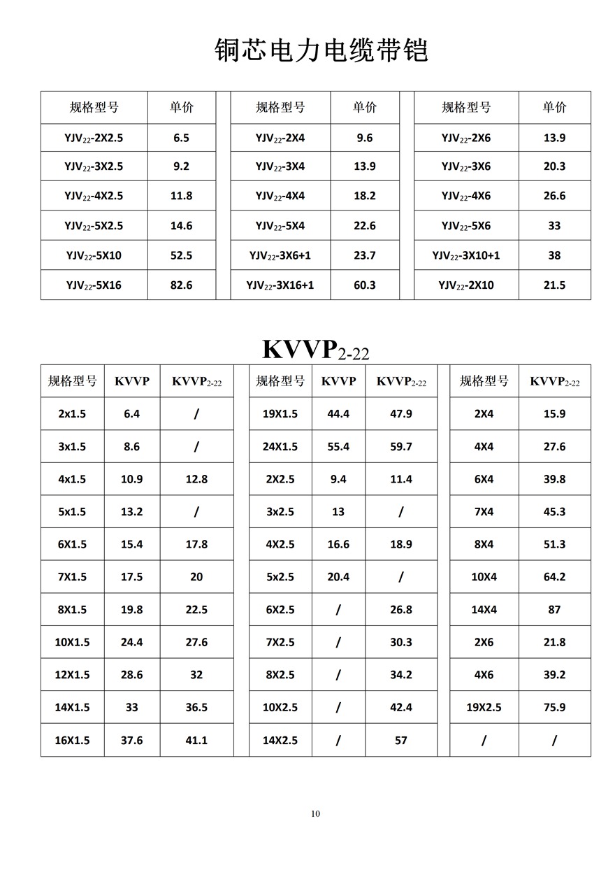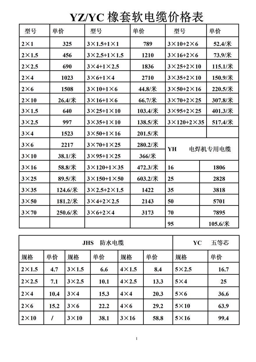 金峰電纜價格表