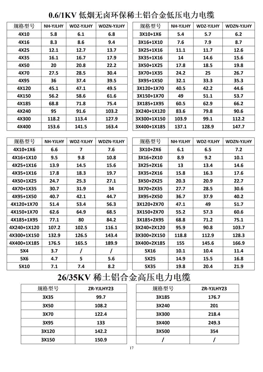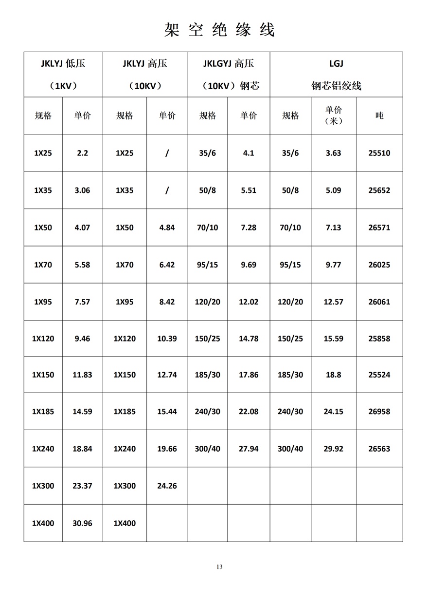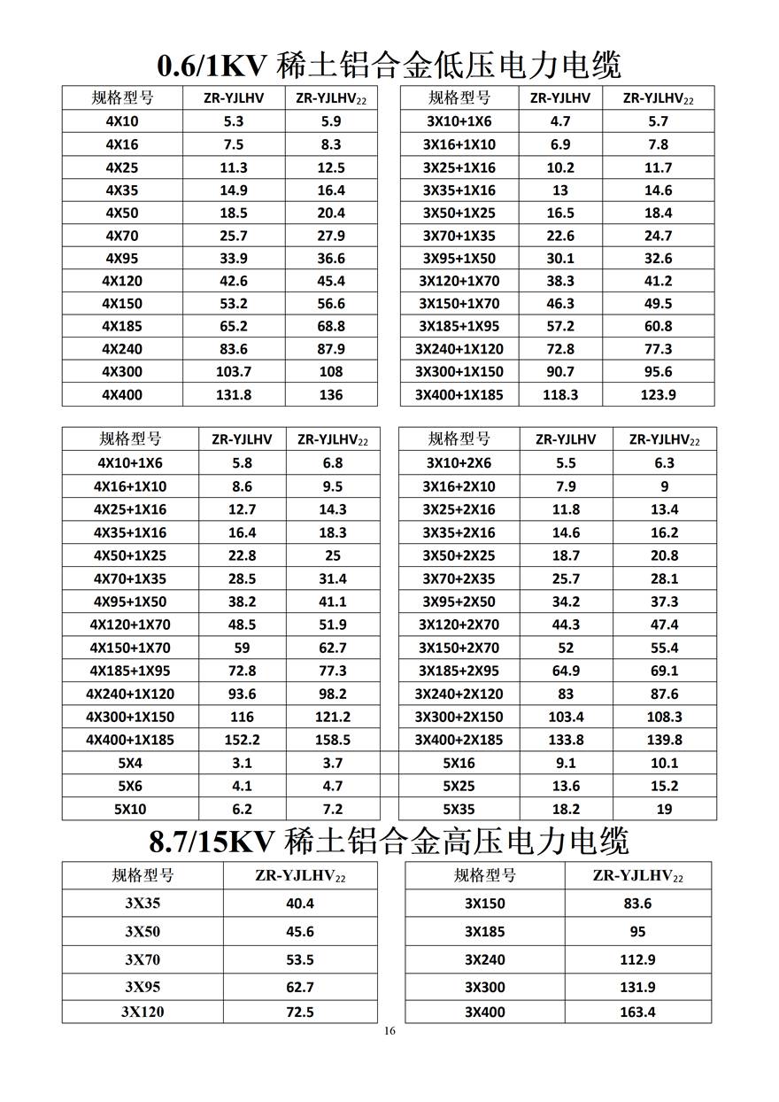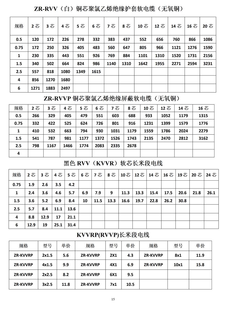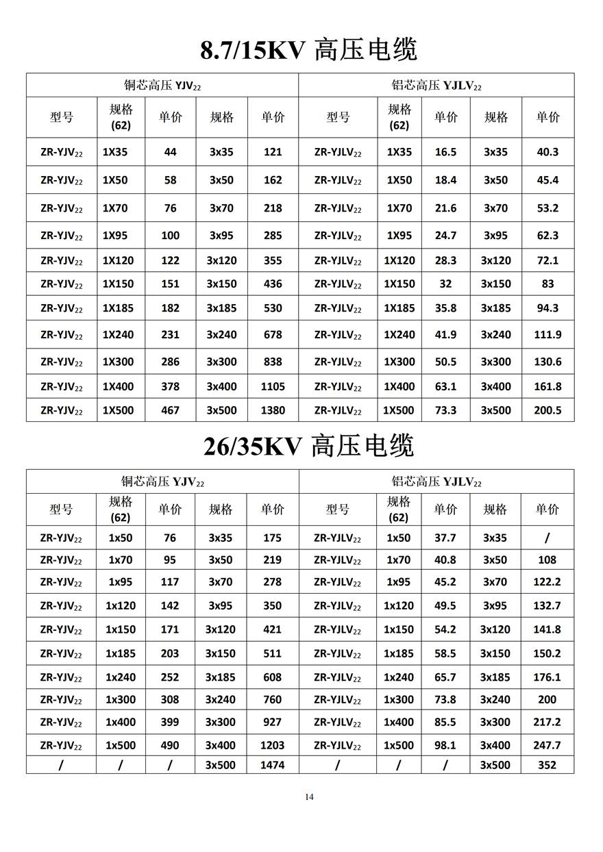 金峰電纜價格表